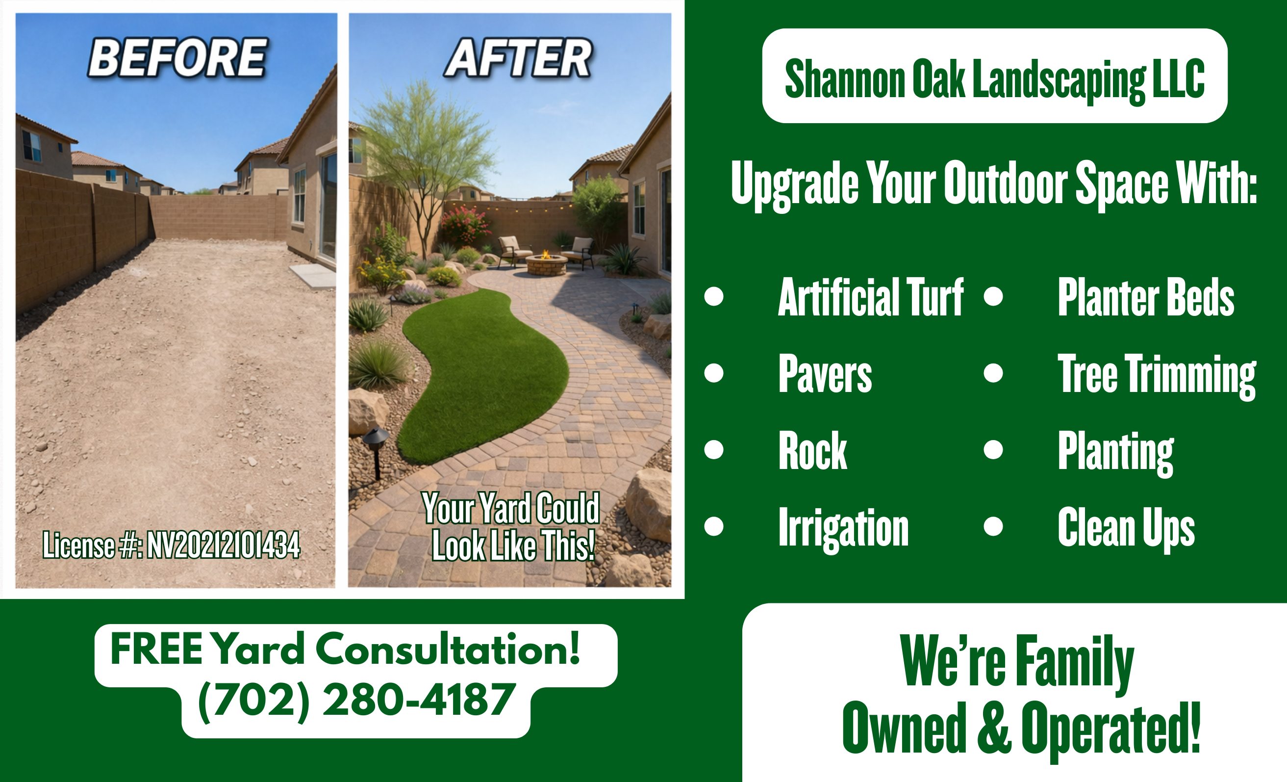 If your yard isn’t getting used, it’s time to upgrade. Shannon Oak Landscaping transforms Las Vegas backyards into clean, modern outdoor spaces that look great and are built to last.